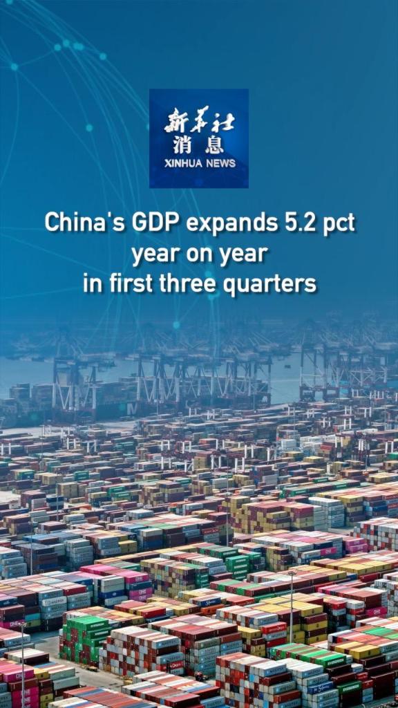 China's GDP expands 5.2 pct year on year in first three quarters
