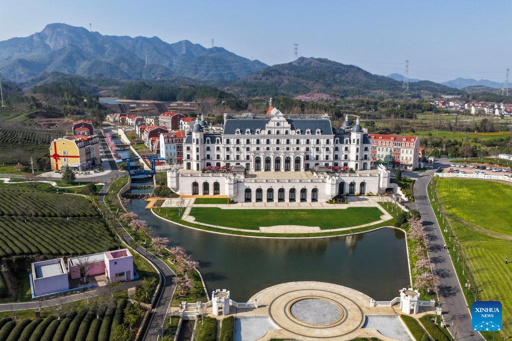 An aerial drone photo taken on March 10, 2026 shows a scenic area in Jinhua City, east China's Zhejiang Province. (Xinhua/Xu Yu)