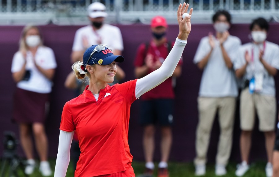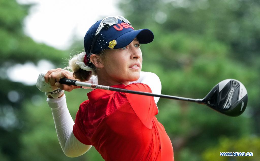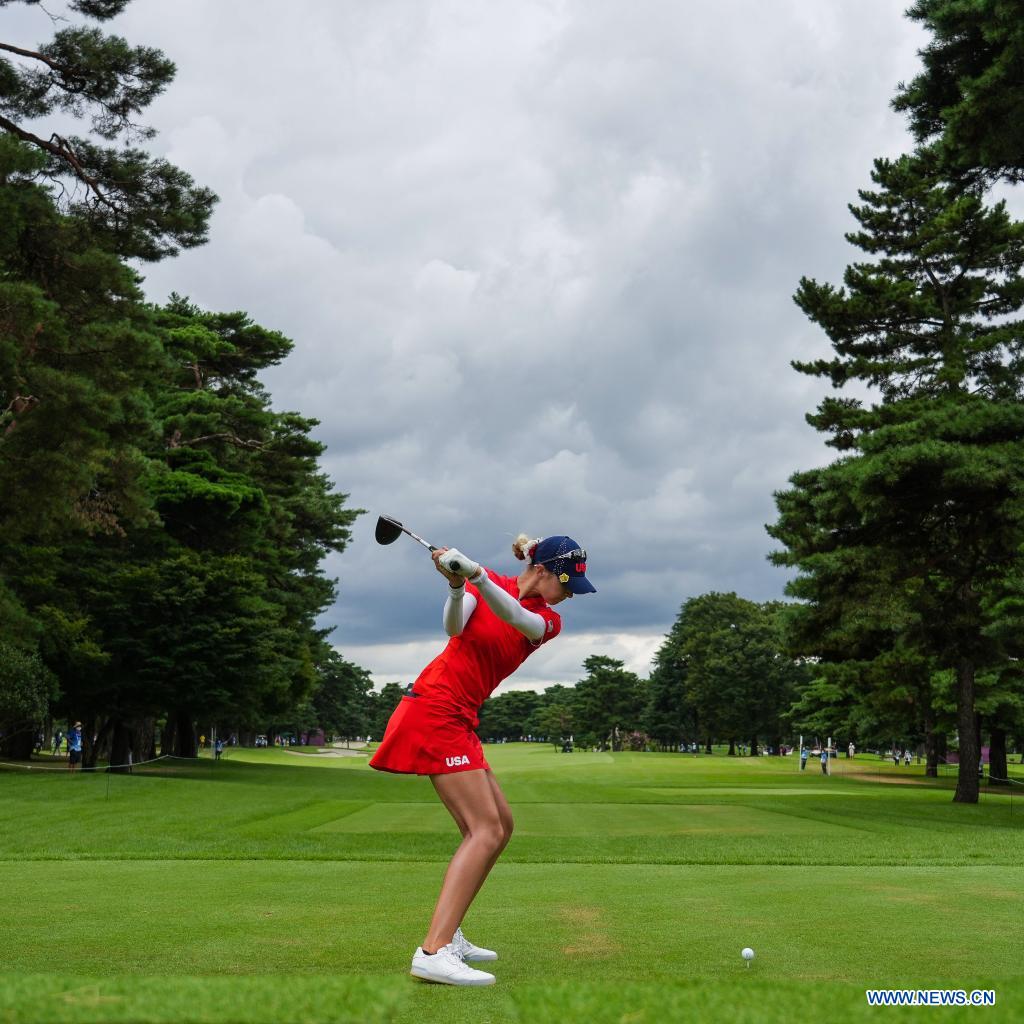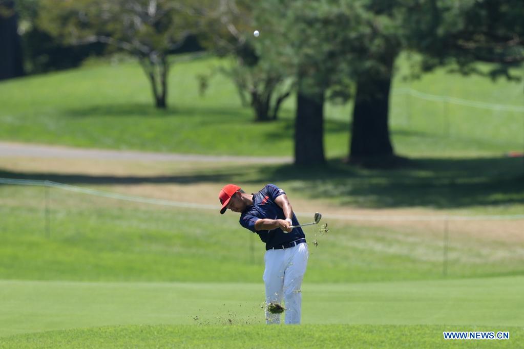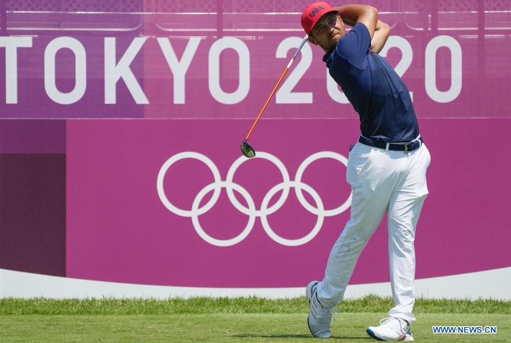 Xander Schauffele of the United States reacts during the men's individual stroke play round 4 golf match at Tokyo 2020 Olympics in Saitama, Japan, Aug. 1, 2021. (Xinhua/Liu Dawei)