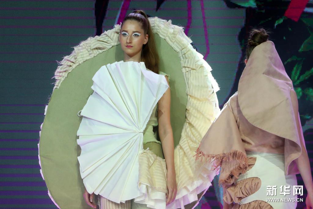 6月9日,在白俄羅斯明斯克,模特在時裝設計與攝影大賽上展示參賽作品。新華社發(任科夫攝)