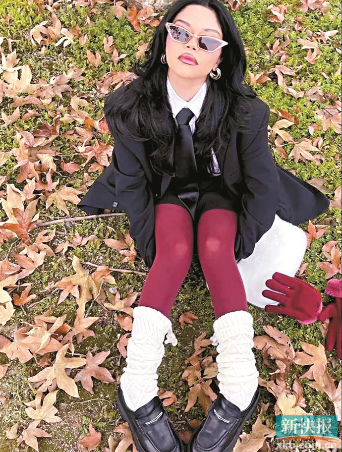 进阶玩家可尝试更具视觉冲击力的色彩混搭,抓住平衡的精髓即可。选上衣配色呼应丝袜颜色,使撞色造型形成联动,也可用黑、白、灰等基础色彩过渡,配饰如围巾、手包、鞋子同色的多巴胺彩袜,令整体造型形成视觉闭环。