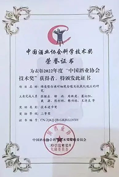 洋河股份技术成果“绵柔型白酒对细胞自噬及抗氧化效应的研究”,荣获“中国酒业协会科学技术奖”;“基于高通量测序技术解析中高温制典细菌群落的演替规律”研究论文,荣获“中国酒业协会科技进步优秀论文奖”;