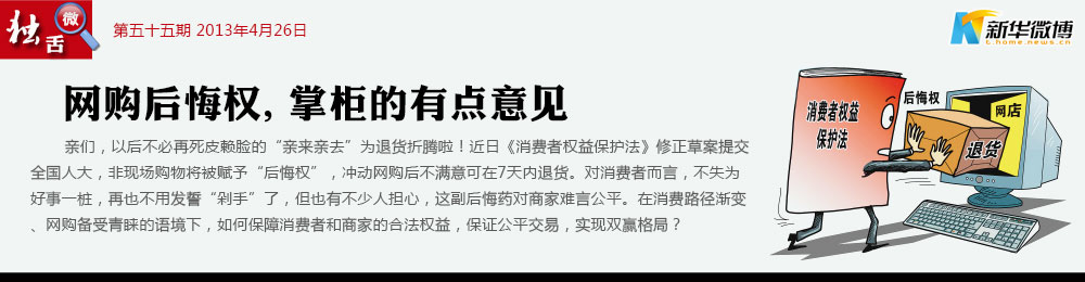 【賣家能有保障嗎?】 網絡是虛擬的,網購卻是實體的。為了防止消費者的惡意退貨,甚至以此為要挾出現職業退貨族,可以考慮非質量問題的無理由退貨收取手續費。這應該是“后悔權”對于賣家的一個保障!