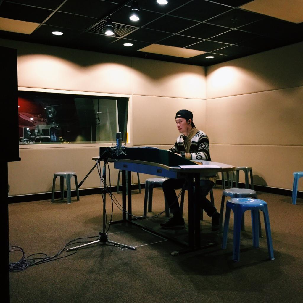 孫中文的工作時(shí)間幾乎都是在配音間度過的。(受訪者提供)