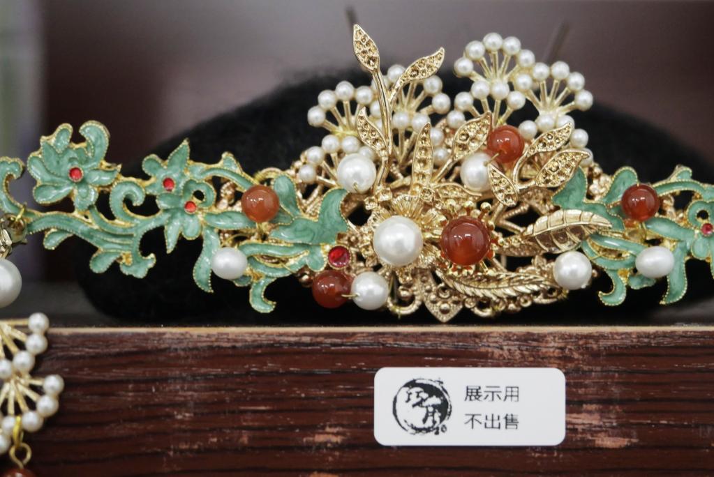 在香港葵涌一座工業(yè)大廈內,漢文化工作室中擺放的頭飾(7月10日攝)。新華社記者 王申 攝