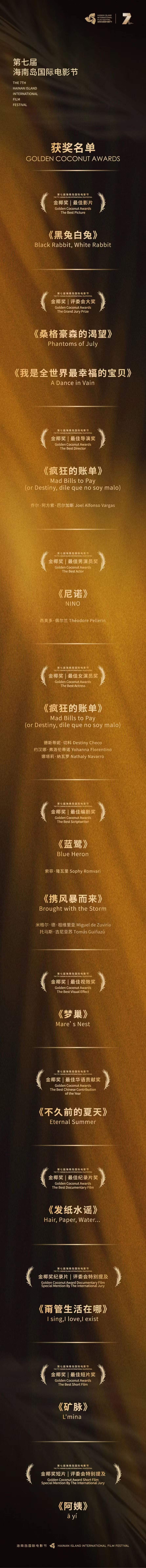 第七届海南岛国际电影节获奖名单(海南岛国际电影节供图)