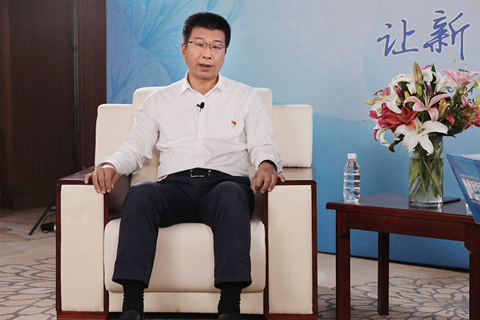 圖為凌源市委書記王志剛在訪談現場 張俊杰 攝