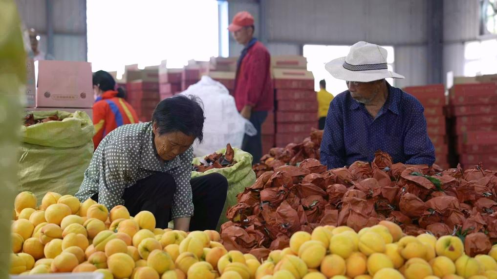 新华社武汉6月22日电(记者侯文坤)轻轻捏住桃子一旋,果蒂便脆生生断开,果农麻利地将桃子放进筐内……湖北省枣阳市新市镇钱岗二村的桃园里,成片桃树迎来采摘季,32岁的苗国存正和果农们一道将刚摘下来的黄桃打包装箱。