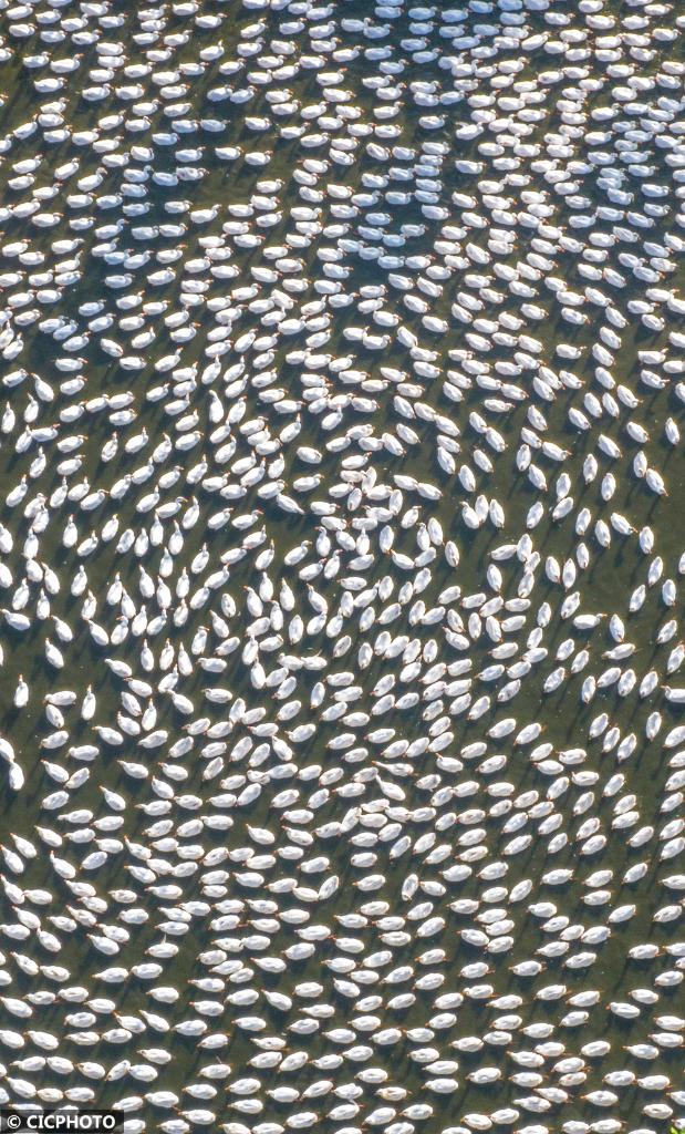 2025年7月12日,江苏省宿迁市泗洪县石集乡一生态鹅养殖基地生机盎然,工作人员正忙着投放饲料。近年来,石集乡依托滩涂等自然资源大力发展生态养殖,既盘活了闲置资源,又通过规模化养殖带动农户增收。