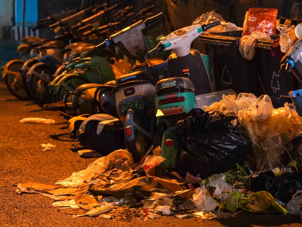 10月10日晚,在云南昆明某夜市,多个垃圾桶被塞满,残羹剩饭不断溢出,不仅造成食物浪费,也对周边环境卫生带来影响。