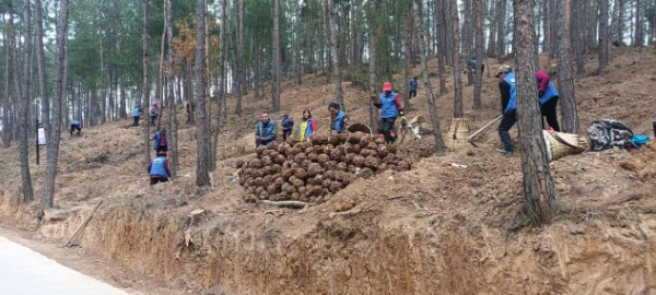 2025年12月10日,采药人在广元昭化区松林间挖掘成熟的伏苓。新华网发(受访者供图)