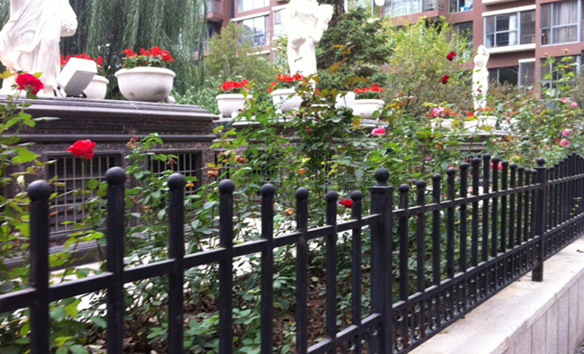 在富力城的大社區之中,每個小區域都配有保安人員,也都是封閉式設計,業主需要刷卡進入。不過小區的外部護欄之低也是其他樓盤“不可比擬”的。這種護欄基本上起不到安保的作用,并且院中場景一覽無余。