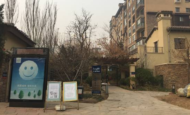 記者探訪當天為工作日上午,在項目正門,門禁等安保設施良好,居民需刷卡進出小區。記者試圖進入小區時,保安詳細詢問了信息,并表示需要記者與小區內部業主聯系后方可進入。期間保安人員態度良好。當被問及小區目前的房價和是否出租時,保安人員表示,可向物業租售中心詢問,并告知了電話和具體地址。