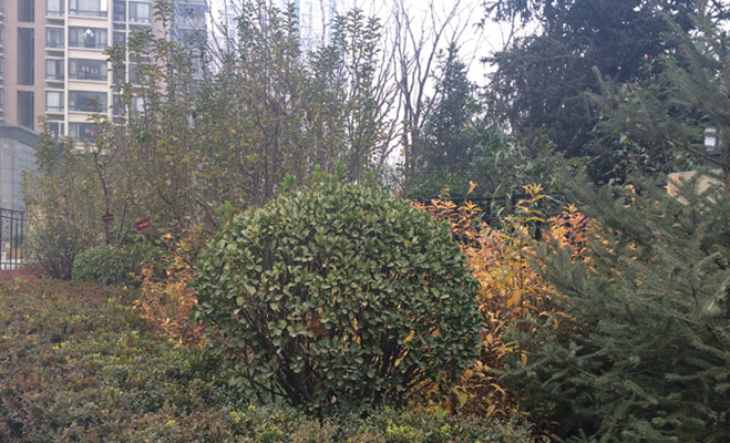 記者走訪發現,小區綠化率很高,院內植被茂盛,種類繁多,草地、灌木叢和高大樹木形成了錯落有致的園林景觀。