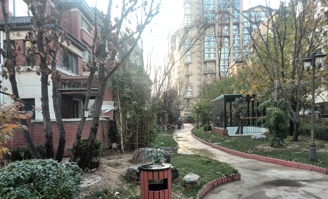 小區內干凈、整潔,綠樹成蔭,但由于小區的體量較小,綠化、水系等景觀設計等均讓人感覺略顯局促。