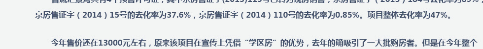 第16期 -前7月北京132新盤入市 整體去化率僅三成多