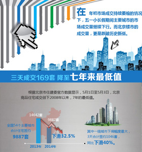 根據北京市住建委官方數據顯示,5月1日至5月3日,北京商品住宅共成交169套,同比去年五一假期降低78.9%。并創下了自2008年實行“五一”小長假以來7年的最低值...[詳細]