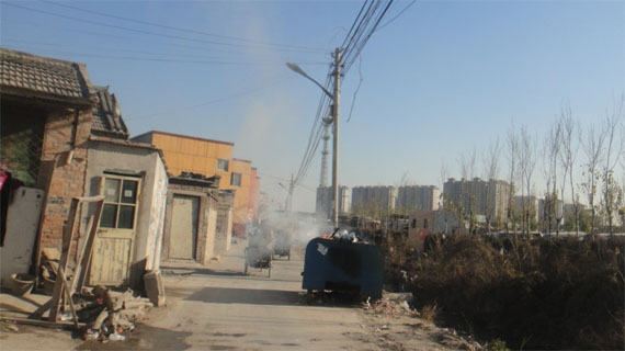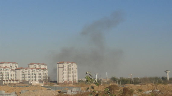 新華房產11月22日北京訊(記者 朱玲)潤楓領尚,南靠北神路垃圾填埋場,北接五建攪拌站和董村綜合處理廠。前去踩盤的記者剛下公交,便遠遠看到項目處于濃煙黑霧的籠罩下。一位開三輪的大姐告訴記者,應該是附近工地在燃燒垃圾。“這里的空氣肯定沒法跟市里比。”