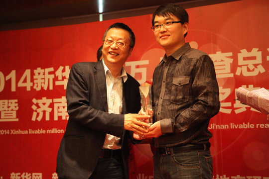 新華房產4月24日濟南訊(記者 王震)下午,2014新華宜居萬人調查總評榜暨濟南宜居樓盤頒獎典禮在濟南舉行。主辦方現場為入選總評榜的12個樓盤頒發了最佳工程質量獎、最佳人氣獎等五個獎項,其中含金量最高的2014最佳宜居大獎(濟南)由龍湖·名景臺項目摘得。