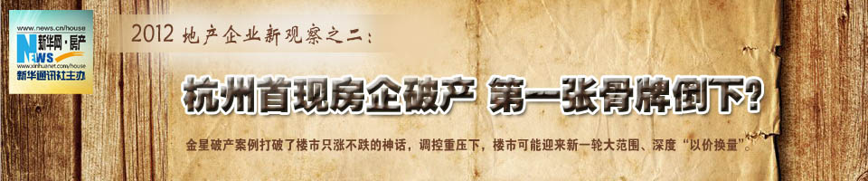 日前,杭州金星房地產開發有限公司向法院申請破產清算。盡管有關部門稱金星房產破產與樓市調控無關,但許多媒體仍將其稱為本輪調控以來杭州首家破產房企。專家認為,在樓市持續調控下,一些房企資金鏈異常緊繃,很可能步金星后塵,房企破產數量很可能逐漸增多。 …[詳細] |