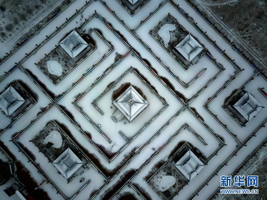 2月28日拍攝的甘肅省張掖市甘州區(qū)堿灘鎮(zhèn)古城村雪景(無人機(jī)照片)。新華社發(fā)(成學(xué)磊 攝)