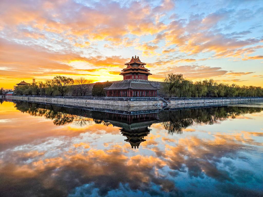 这是2024年11月29日在北京拍摄的朝霞下的故宫角楼(手机照片)。新华社记者 陈晔华 摄