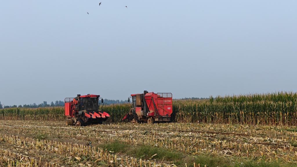 山东省德州市平原县一家玉米种植专业合作社的玉米,正等待连续晴好天气集中收获。新华社记者萧海川 摄