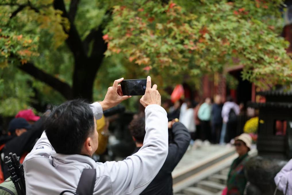 在点位选择上,公园注重彩叶树种多样性以及与景观建筑的融合效果。18处点位中有10处位于建筑周边,游客既可置身景中,感受人文与自然的和谐交融,也可远眺借景,欣赏层次丰富的秋日画卷。