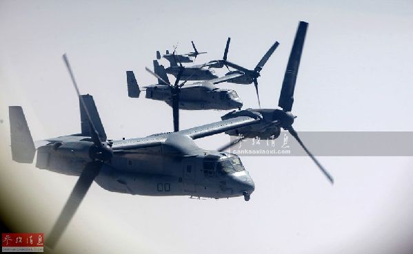 資料圖:V-22“魚鷹”旋翼機編隊。