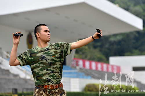 ????練兵場上空被投擲的防暴彈劃出一條條優美的弧線。“八環、九環、十環……。”報靶員響亮的聲音響徹練兵場。班長蔡錦彬投擲的防暴彈仿佛對靶心有向心力,一環比一環高;其他官兵也不甘示弱,剛剛創下的好成績不斷被刷新,戰士廖國勇猶如賽場上的一匹黑馬,憑著過硬的實力,一路過關斬將,奪得第一。(林宇華)