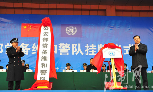 ????經(jīng)國(guó)務(wù)院和中央軍委批準(zhǔn),12月22日,公安部常備維和警隊(duì)在山東省東營(yíng)市掛牌成立。公安部部長(zhǎng)助理王儉出席儀式并為警隊(duì)揭牌、授旗。