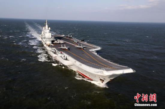 資料圖 中國(guó)人民解放軍海軍遼寧艦編隊(duì)赴西太平洋海域開展遠(yuǎn)海訓(xùn)練。圖為遼寧艦正在航行。 中新社發(fā) 張凱 攝