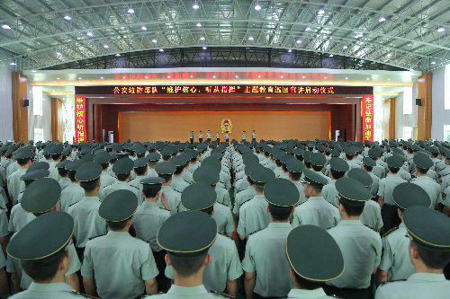 公安邊防部隊(duì)“維護(hù)核心、聽從指揮”主題教育巡回宣講啟動(dòng)儀式現(xiàn)場(chǎng)。