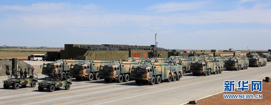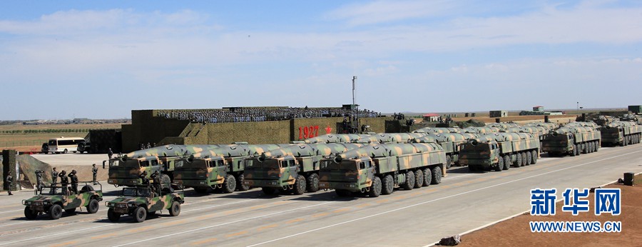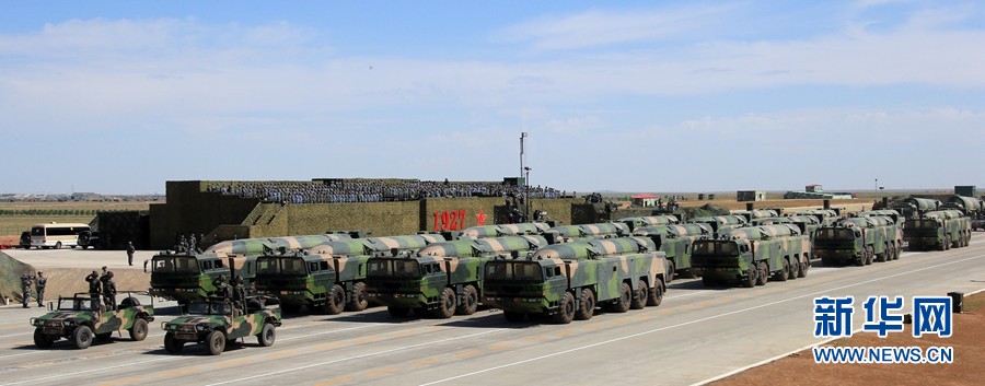 7月30日,慶祝中國(guó)人民解放軍建軍90周年閱兵在位于內(nèi)蒙古的朱日和訓(xùn)練基地舉行。中共中央總書(shū)記、國(guó)家主席、中央軍委主席習(xí)近平檢閱部隊(duì)并發(fā)表重要講話(huà)。這是核常兼?zhèn)鋵?dǎo)彈方隊(duì)。新華社記者 查春明 攝