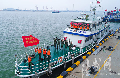 ????7月31日,中國人民解放軍建軍90周年紀念日即將來臨之際,山東邊防總隊東營邊防支隊船艇大隊官兵在前甲板合影留念,表達新生代官兵堅定維護核心,弘揚老一輩革命軍人優良傳統,誓做近海平安鐵盾的赤膽忠心。這支年輕的公安現役邊防船艇部隊組建于2006年,是全國唯一一支護衛海上石油產區的現役武裝力量。建隊十一年來,東營近海實現連續十一年涉油案件“零得逞”。(陳鏡旭)
