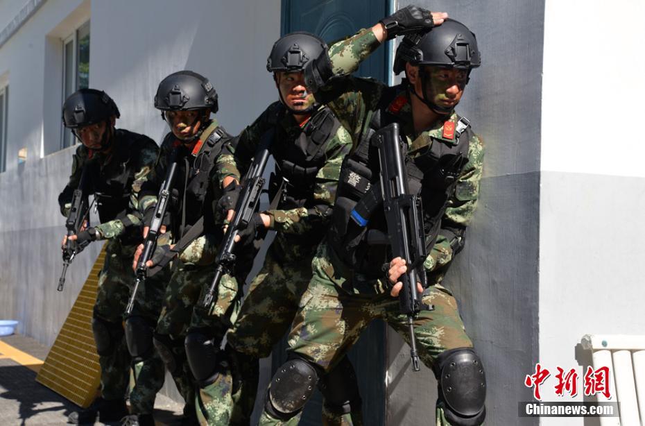 ????8月9日,擔負中哈出入境邊防檢查任務的新疆邊防總隊巴克圖邊檢站,緊貼安保任務需要,從實戰出發,在烈日下加大對單個軍人應急作戰和小組配合作戰的培訓,以提高官兵在執行急、難、險、重任務時的綜合能力。王躍 攝