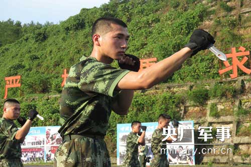 ????越是惡劣的環境越能錘煉部隊打仗作戰的本領,在訓練場上,警械裝配、搏擊擒敵、反恐處突等實戰化訓練科目正在如火如荼進行。在搏擊擒敵訓練中,手臂表皮擦傷,一名戰士依舊在咬牙堅持;烈日下,全體官兵正在進行反恐處突演練,從隊形變換到單兵訓練,一些戰士體力開始不支,然而卻無一人掉隊;訓練場上,一場軍體小競賽正火熱展開……