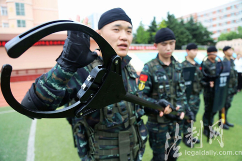 ????當日,隊員們為校車職工展示了部分新型警用器械,現場演示擒拿格斗技能,并結合駕乘人員不同崗位需求,通過講解案例,模擬現場,示范教學,教授駕乘人員近身格斗、突襲擒拿、棍術等基本的防身防暴技能。同時,針對女性駕乘人員特點,向她們傳授了跺腳擊面、撞面擊襠等簡單實用的女子防衛技能。
