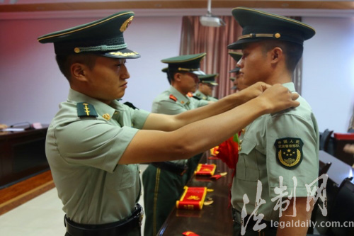 圖為退伍老兵摘卸領(lǐng)花警銜