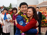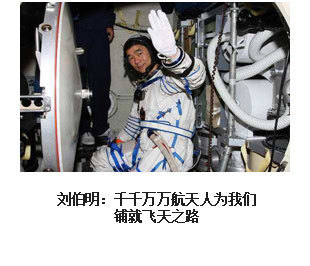 ??? 漫步太空、紅旗永駐。2008年9月27日16時43分,浩渺太空,敞懷相迎,我在戰友伯明、海鵬的協助和支持下,打開軌道艙艙門,邁出了中國人在茫茫太空中的第一步。在19分35秒的艙外活動中,我隨飛船一起飛過了9165公里,成為中國“飛得最高、走得最快”的人。然而,成功并不代表成熟,一切仍要從零開始。后續的空間站任務、登陸月球……路還很長,挑戰還很多,需要付出和努力的也還很多。對于我來說,沒有停歇的腳步,只有奮進的號角。