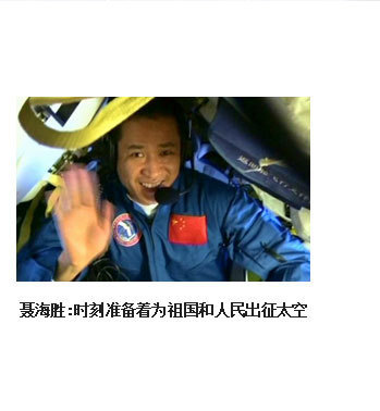 ??? 寧可犧牲自己,也要讓五星紅旗在太空高高飄揚。2008年9月27日16時43分,即將迎來激動人心的出艙時刻,而此時卻出現了2個“意外”,一個是壓力差給開啟艙門造成了不小的麻煩,另一個是突然傳來“軌道艙火災!軌道艙火災!”的報警提示。出艙在即,生死不在我們考慮的范疇,只有完成任務才是最重要的!志剛毫不猶豫地出艙,我果斷調整步驟,先將國旗遞給志剛。任務完成后,志剛問我為什么先把國旗遞出去?我說:“即使我們回不去,也要讓五星紅旗在太空高高飄揚?!?