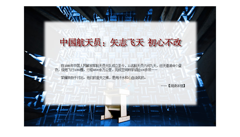 ??? 寧可備而不用,決不用而無備。1998年,我和其他14名戰友一起,懷著對載人航天事業的無限熱愛和憧憬,義無反顧地投身這一承載著中華民族千年飛天夢想的偉大事業。我先后入選神十、神十一飛行任務乘組梯隊,但每一次都與飛天失之交臂。直到今天,我和戰友們一樣,還在堅持不懈地開展訓練。因為我知道,無論是否執行飛行任務,任務的成功就是我的成功,戰友在天上的表現就是我的表現,我愿永遠做筑夢九天的基石,為建設航天強國當好陪練,守望初心,堅守寂寞。?