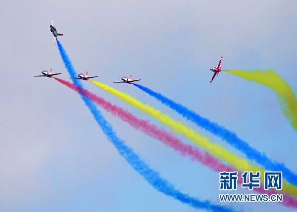 8月30日,“天之翼”飛行表演隊在空軍航空開放活動上進行飛行表演。 新華社記者 王東明 攝