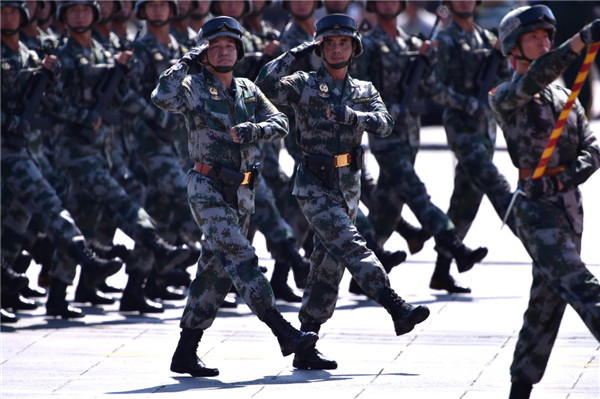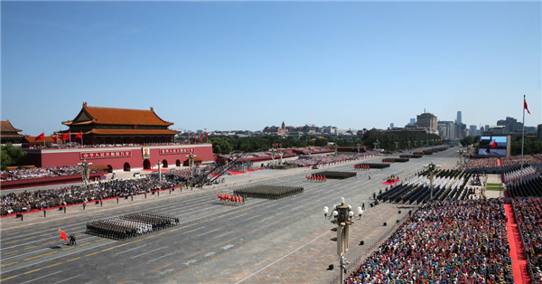 ????2015年9月3日,中國人民抗日戰(zhàn)爭暨世界反法西斯戰(zhàn)爭勝利70周年紀(jì)念大會在北京隆重舉行。這是徒步方隊通過天安門廣場。新華社記者 龐興雷 攝
