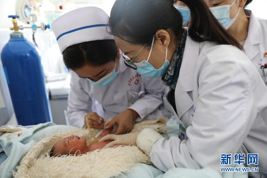 在新生兒病房,空軍特色醫(yī)學(xué)中心援藏醫(yī)療隊(duì)隊(duì)員(右)帶教左貢縣人民醫(yī)院醫(yī)護(hù)人員(左)實(shí)施靜脈穿刺(7月17日攝)。新華社發(fā)(張洪濤 攝)