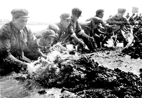 ????西昌衛(wèi)星發(fā)射中心西昌發(fā)射場(chǎng)建設(shè)初期,老一輩航天人在安寧河中搶建長征橋(資料圖片)。新華社發(fā)