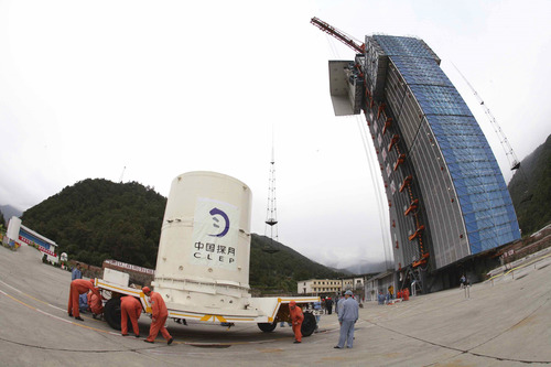 ????嫦娥一號(hào)衛(wèi)星運(yùn)抵西昌衛(wèi)星發(fā)射中心西昌發(fā)射場(chǎng)(2007年10月11日攝)。新華社發(fā)(郭文彬 攝)