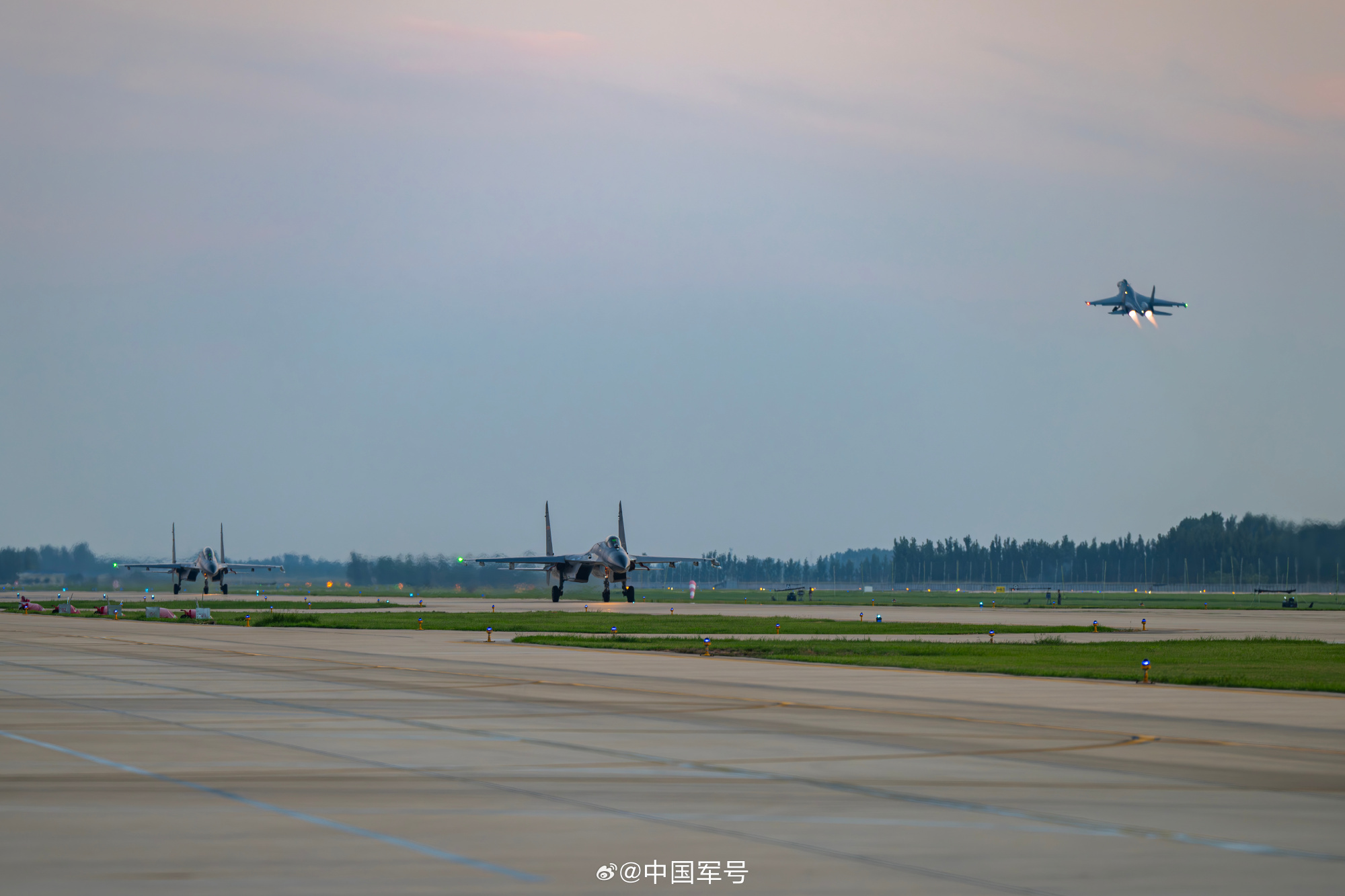 近日,空军航空兵某团跨昼夜飞行训练在夜幕中开启。数架战机依次滑向跑道,如离弦之箭般迅速出动,奔向训练空域。(贺万里 杨军)