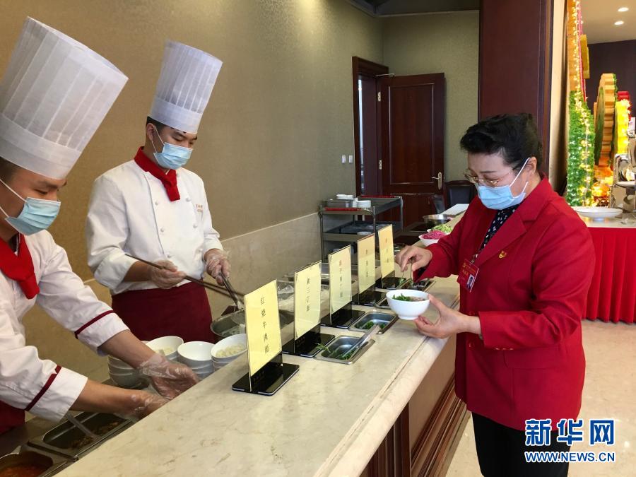 2020年10月29日,受邀列席黨的十九屆五中全會的基層社區工作者吳亞琴在京西賓館餐廳取了一份小碗面。她表示:“盛面的碗也都是小碗,吃多少打多少。”新華社記者 朱基釵 攝