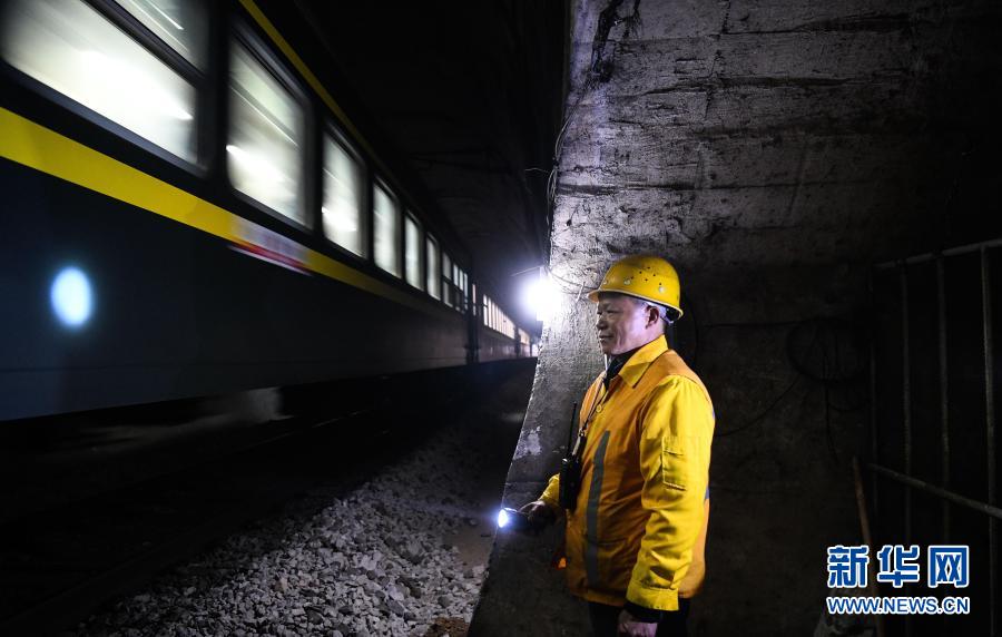 看守工廖成根在目視客車(chē)通過(guò)隧道(1月30日攝)。